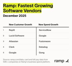 Co-pilots and Coding are the top 2 Horizontal AI breakout use cases, driving 45% and 27% of the Horizontal AI spend respectively. Our bet in this area is Replit which released an AI coding tool that reached $100M ARR within 6 months of launch and has announced that they expect to reach $1B ARR by end of 2026-Replit was named by Ramp as the fastest growing software vendor.