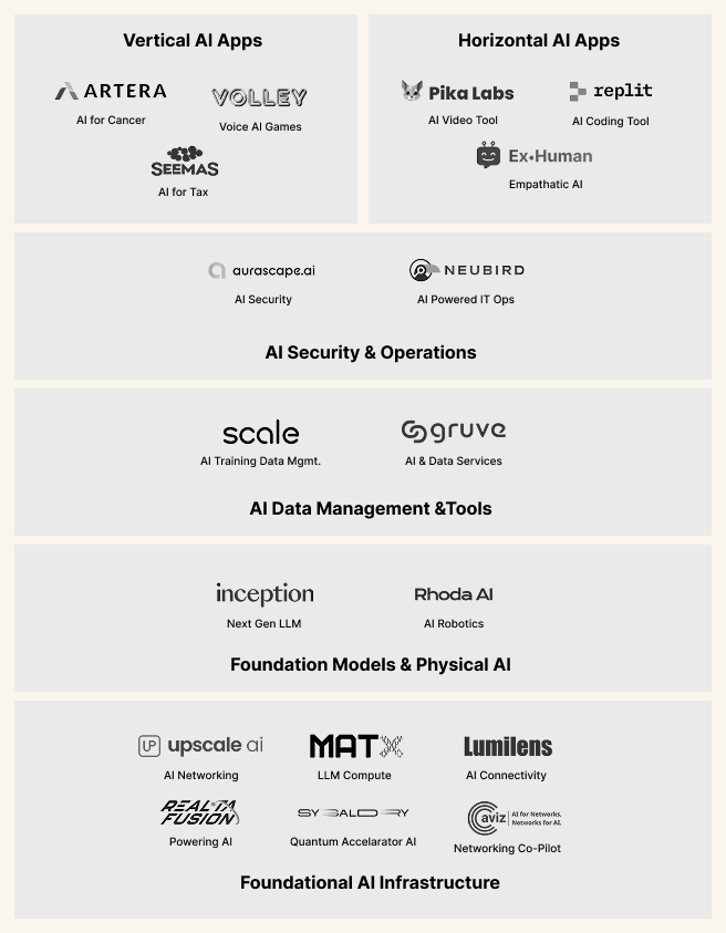 - AI Infrastructure software (Foundation Models, Data Management & Tools and Security & Operations) and